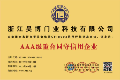 公司一直以來嚴(yán)格執(zhí)行ISO9001質(zhì)量體系和ISO14001環(huán)境管理體系標(biāo)準(zhǔn),建立了完備的科研、開發(fā)、生產(chǎn)、銷售服務(wù)體系。公司是浙江省門業(yè)協(xié)會(huì)會(huì)員單位,江山門業(yè)協(xié)會(huì)理事單位,中國木材與木制品流通協(xié)會(huì)會(huì)員單位,江山市消防協(xié)會(huì)副會(huì)長(zhǎng)單位。